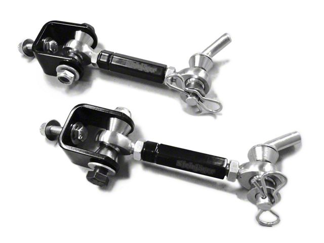 Completely Adjustable. Steinjager Front Sway Bar End Links with Quick Disconnects are fully adjustable. These sway bar disconnects feature hex adjusters rods that let you dial in the proper end link length to properly adjust your suspension geometry. After adjusting, you simply tighten their jam nuts and you’re on your way.