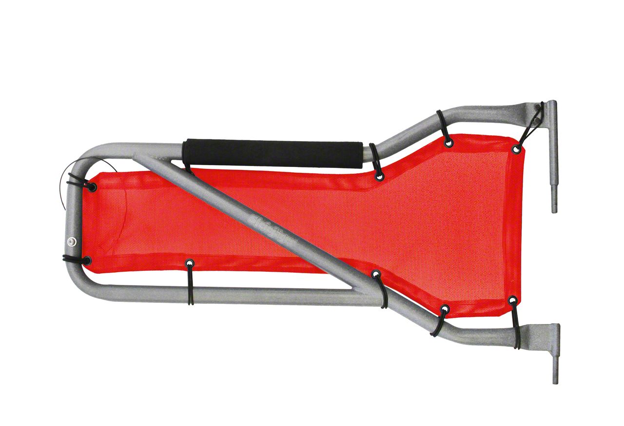 Styling and Profiling on the Off-Road. The Steinjager Front Tube Door Mesh Covers - Red are an eye-opening complement for your Jeep Wrangler, decking out your tube doors with high-quality mesh material, supported by 20 bungee balls to keep them in place.