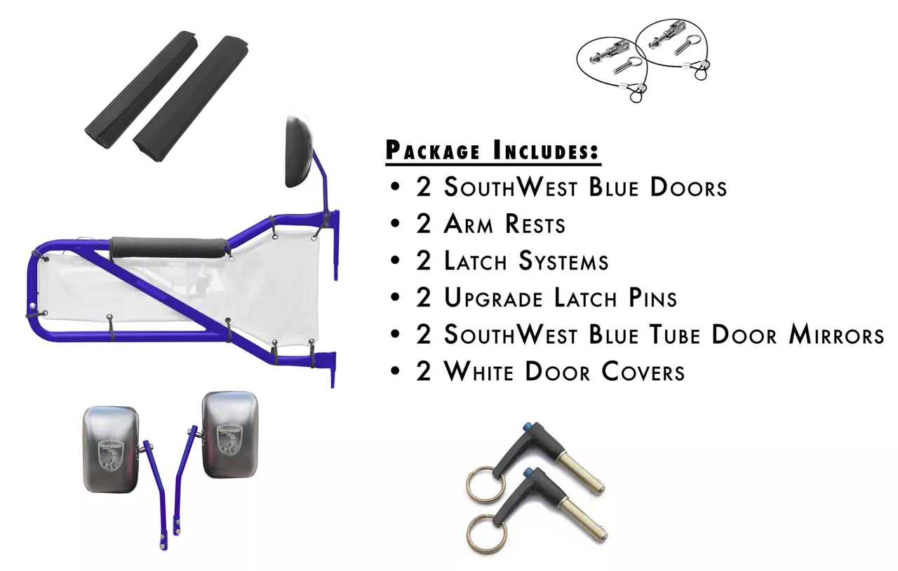 Top-Class Construction. Steinjager constructs their products to be tough and durable, and this Steinjager Front Tube Door kit is no exception. Made from strong tubular steel and powder coated in a relaxed southwest blue finish, this kit combines style with function.