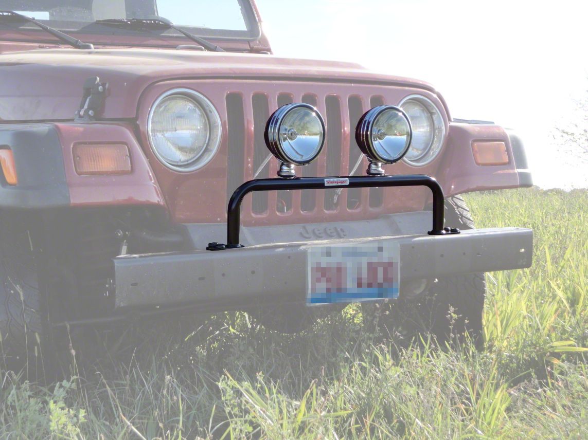 Solid Off-Road Protection. This Steinjager Grille Guard attaches onto the TJ’s front bumper for added front grille protection. This bumper attachment shields the Jeep’s front end and radiator against moderate physical impacts, especially when coursing through challenging terrains. It is also designed to serve as a light bar that can accommodate two more lights.