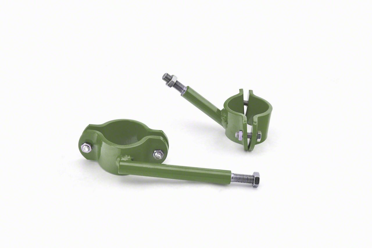Durable Construction. The brackets and nuts were designed and manufactured from high-quality material so they will last for the long haul on your Jeep. The nuts work effectively to secure the jack to the mounting stud on the roll bar of your Jeep. The brackets have a Locas Green finish. This kit is made in the U.S.A.