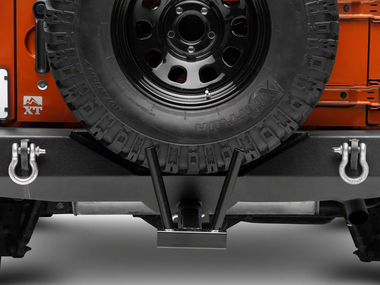 Fun Addition. Not all accessories have to have a purpose to improve your off-road prowess. Some can just be plain fun, like the black Steinjager Hitch Mounted Dual Flag Holder that can hold 2 flags (not included) of your choice and display them proudly from the back of your Jeep.