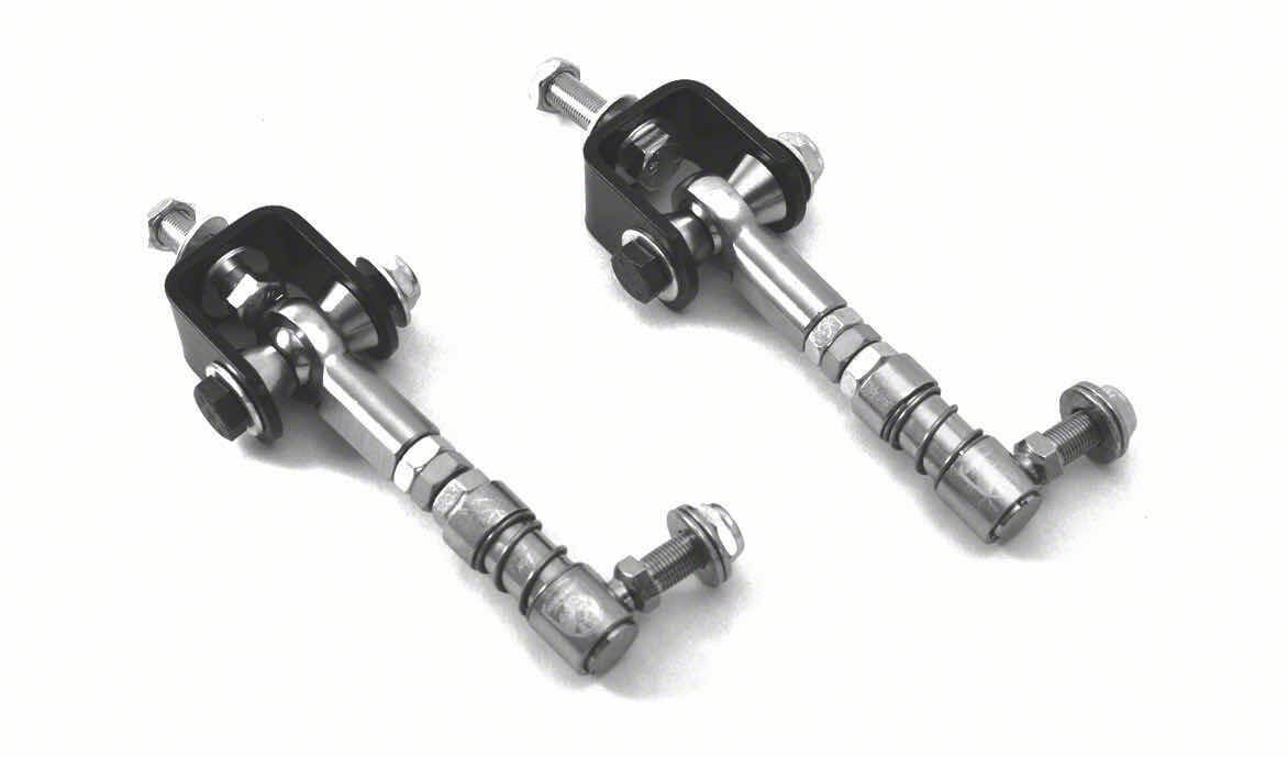 Enhanced Sway Bar Control. The Steinjager Adjustable Front Sway Bar Quick Disconnect End Links provide an efficient solution for disconnecting your front sway bar. Designed for Jeep owners who need increased axle articulation for off-road adventures, these end links allow quick and easy disconnection, ensuring smoother and more flexible suspension movement when tackling rugged terrain.