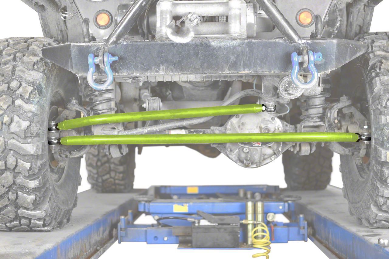 Construction and Appearance. This kit is built from 1.50-inch x 0.25-inch wall DOM tubing for exceptional strength and impact resistance. It features 3/4-inch chrome moly rod ends for superior articulation and wear resistance, and comes complete with Grade 8 hardware for reliable installation. The adjustable length range of 37.0 to 38.0 inches ensures a proper fit for your setup.