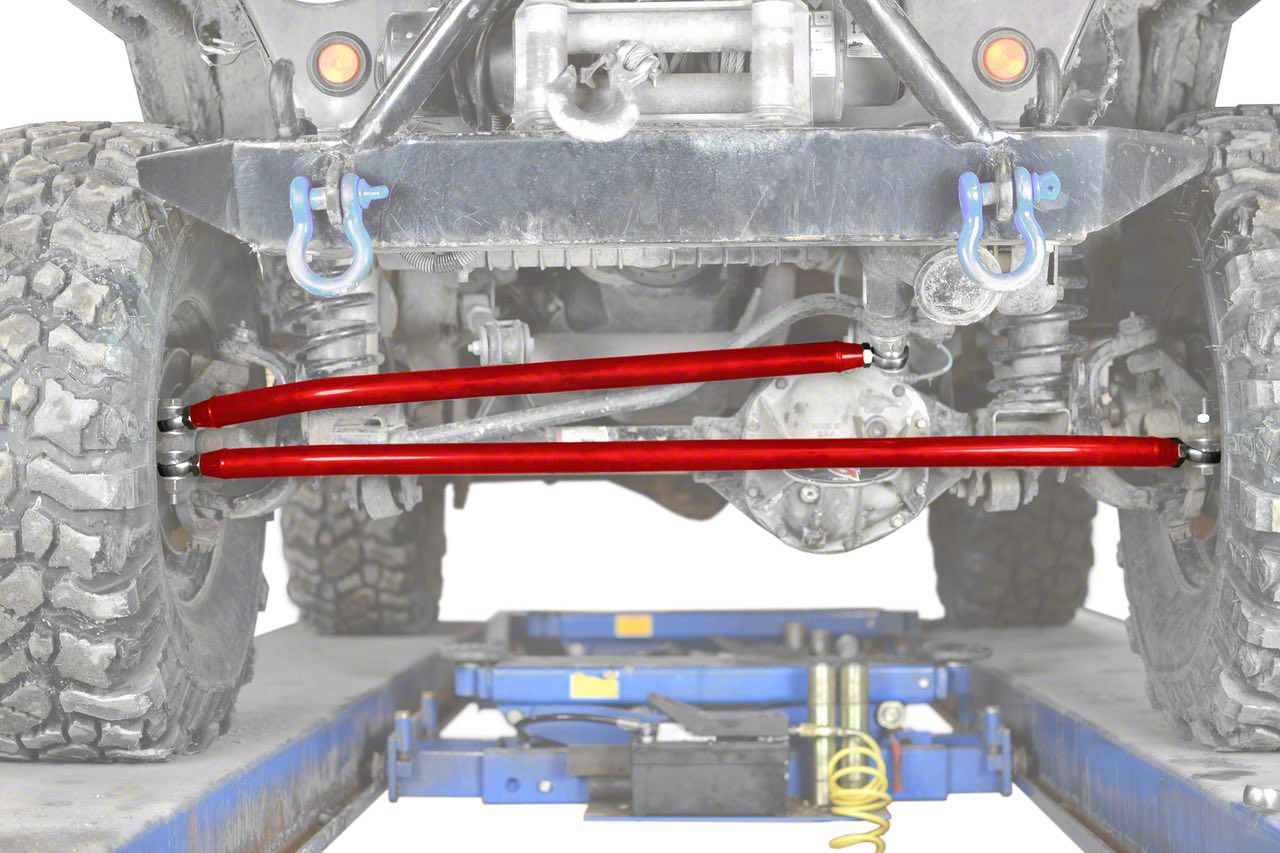 Construction and Appearance. Featuring a bold Red Baron finish, this steering kit is made from 1.5x0.25-inch wall DOM tubing with 3/4-inch chrome moly rod ends. It comes with Grade 8 hardware for reliable performance and strength, ensuring long-lasting durability even under tough conditions.