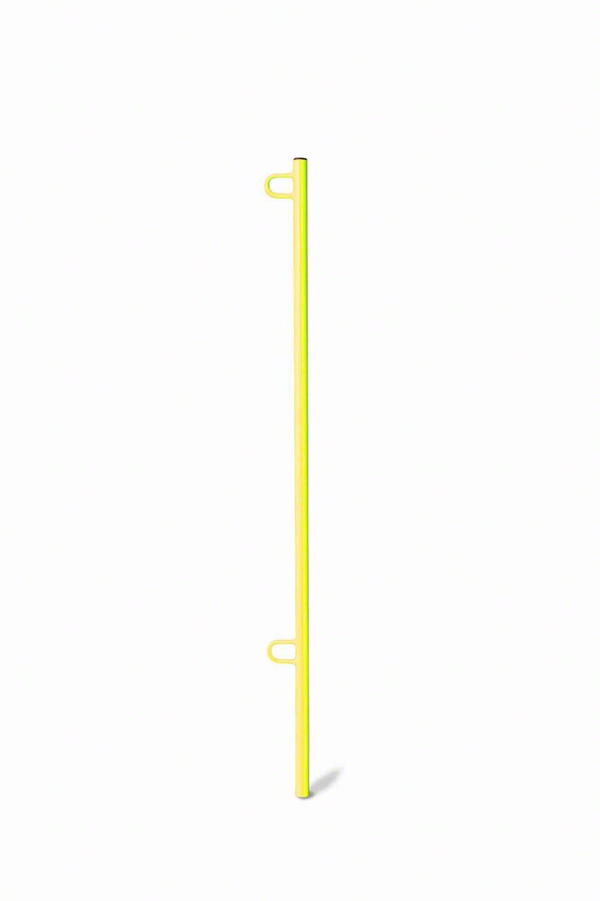 Construction and Design. This Flag Pole Kit is made from 1 inch OD x .120 inch wall tubing. Its neon yellow finish blends and there's a plastic cap at the top of the pole to keep water and dirt out. The spacing between loops is 34 inches, which means you can hang a variety of flags.