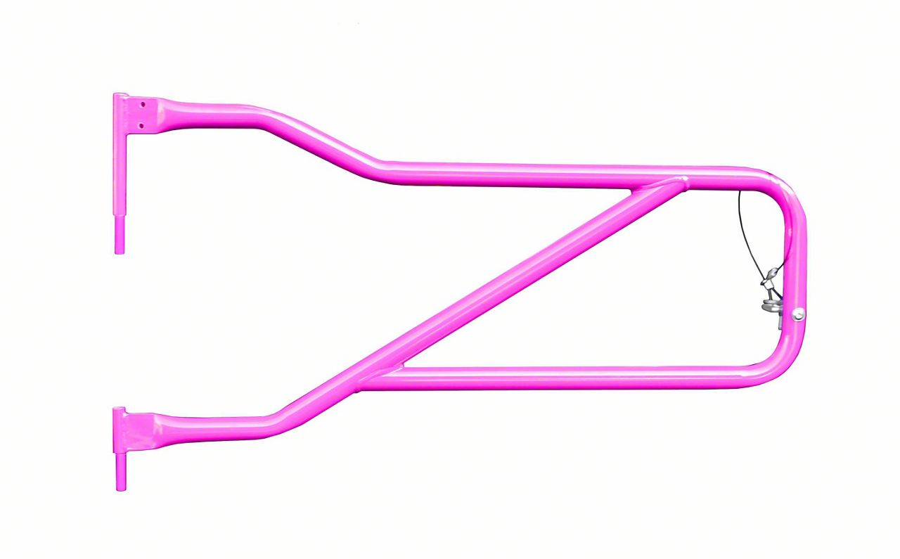 Sturdy Build Quality. These front trail tube doors are built from high-grade 1.25-inch tubular steel construction, providing strength and durability without being excessively heavy. Moreover, these doors are precision-bent and deftly welded before being integrated with custom machined hinges. This construction gives you a pair of doors that fit like a glove when installed. Wrapping up its construction is a slick hot pink powder coat finish that also provides exceptional rust protection.