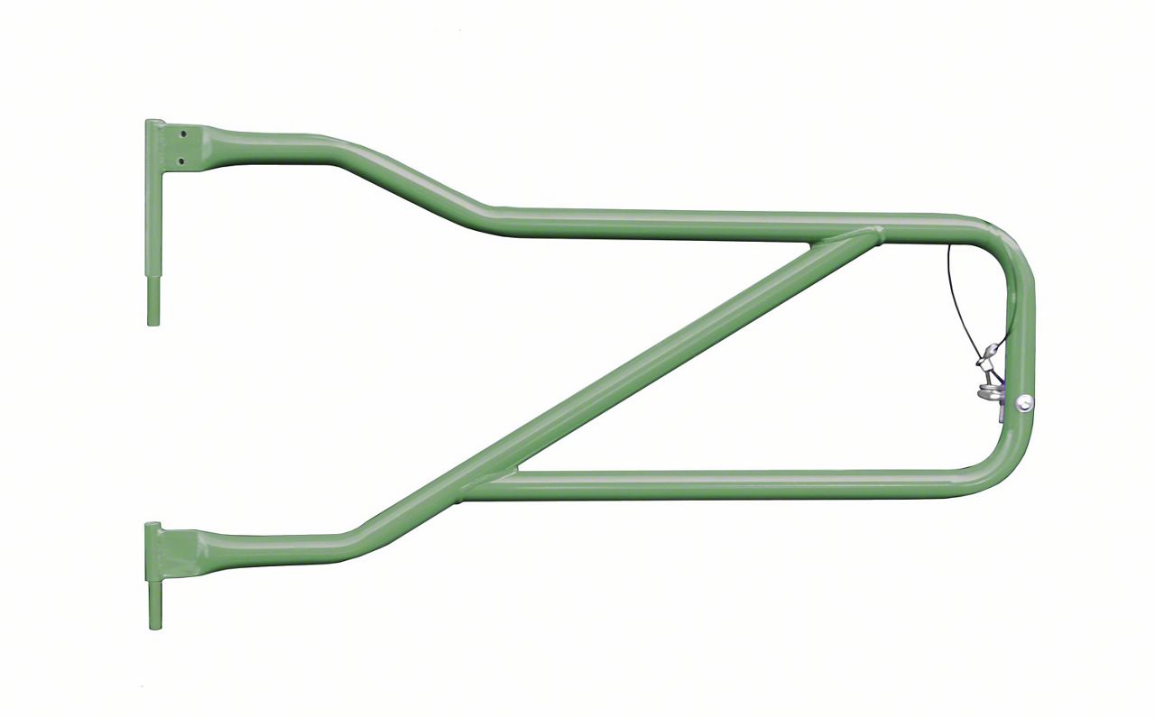 Hefty Build Quality. These front trail tube doors are constructed from hefty 1.25-inch tubular steel, utilizing a specialized precision-bending technique. These door assemblies are then expertly welded before integrating custom machined hinges. The result is a pair of trail doors that offer superior durability and an exact fit. Finally, these doors are finished in a unique Locas Green powder coating for aggressive looks and optimum corrosion protection.