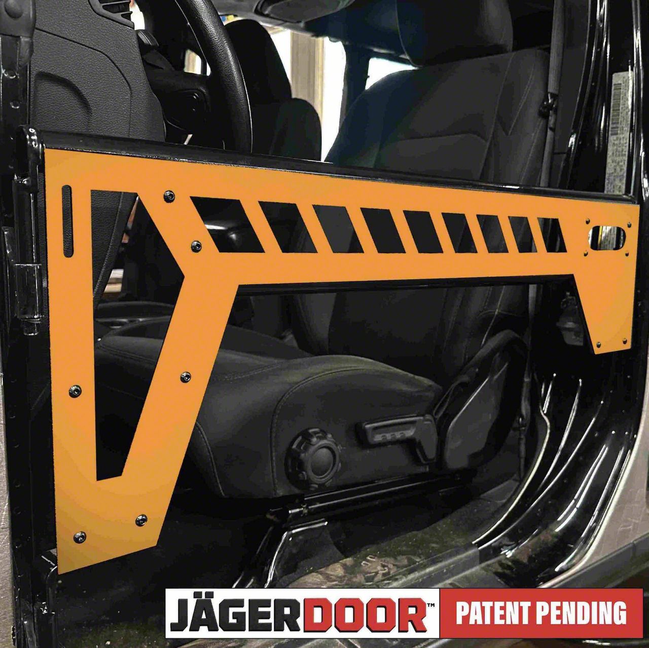 Trail-Ready Custom Doors. The Steinjager JagerDoor Front Trail Doors in Fluorescent Orange give your Jeep Gladiator JT a rugged off-road look while providing functional, open-air freedom. Engineered with a patented design and built for versatility, these trail doors include multiple latch components to ensure cross-compatibility with other Jeep models. Whether you're cruising through trails or customizing your rig, the JagerDoor Trail Doors provide the perfect combination of form and function.
