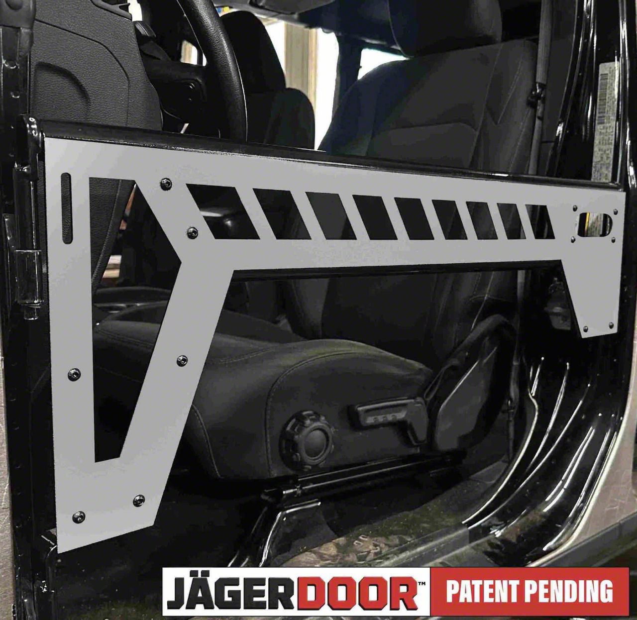 JAGERDOOR™ FRONT TRAIL DOORS TO FIT THE 2019-PRESENT JEEP JT GLADIATOR. POWDER COATED GRAY HAMMERTONE. PATENT PENDING. MADE IN THE USA.