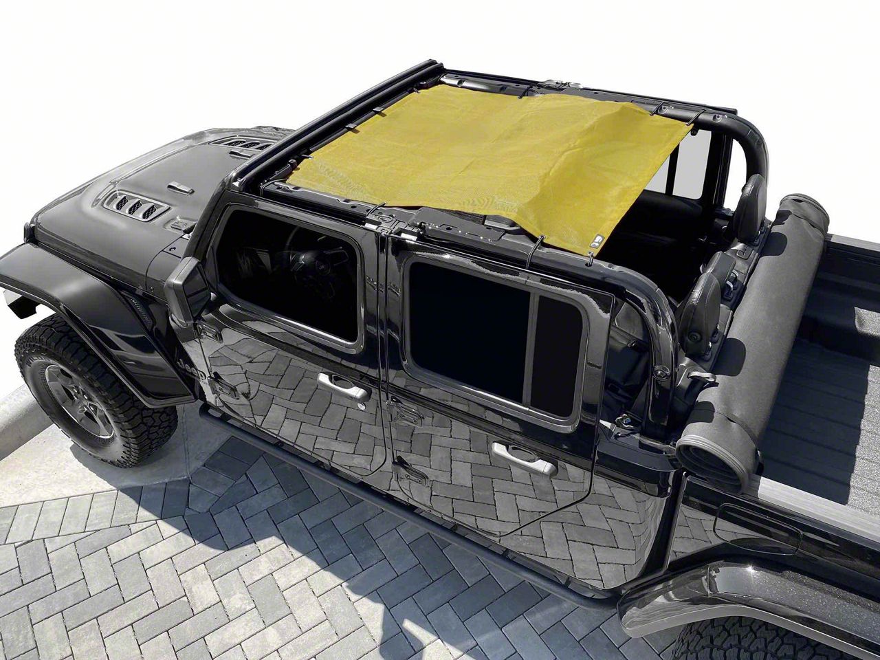 Application. The Steinjager Teddy Top Yellow Solar Screen Cover is tailored to fit 2020-2025 Jeep Gladiator JT models.