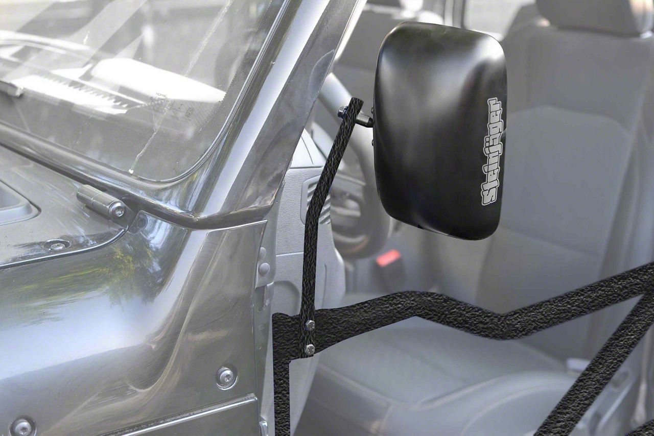 High Grade Quality. Steinjager Tube Door Mirrors are a durable and functional accessory for your off-road adventures. Crafted from 1/2-inch stainless steel, these mirrors are designed to withstand the rigors of off-roading and maintain their integrity in challenging environments. The textured black finish not only adds a rugged and stylish look to your vehicle but also provides exceptional resistance to scratches and wear. These mirrors are also protected against harmful UV rays, ensuring they can endure prolonged exposure to the sun without fading or degradation.