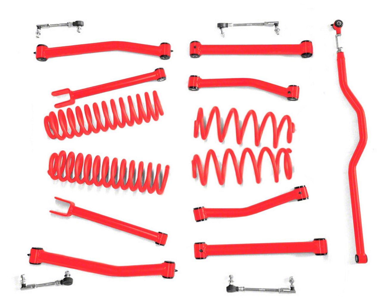 Improves Ground Clearance and Off-Road Performance. The Steinjager 2.50-Inch Suspension Lift Kit is engineered to provide improved ground clearance and off-road performance for your Jeep Wrangler JK. Furthermore, this lift kit enhances stability and suspension articulation while delivering long-lasting reliability and an aggressive look with its Red Baron finish.