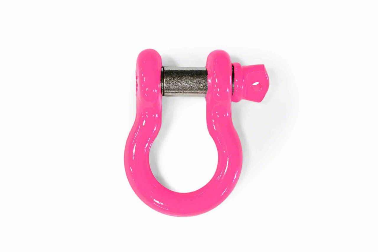 Construction and Features. Crafted from forged solid steel, this D-ring shackle ensures maximum durability and strength. The hot pink powder-coated finish not only adds a bold, stylish touch but also provides excellent corrosion resistance, ensuring longevity in rugged conditions. The screw-in pin allows for secure and easy attachment.
