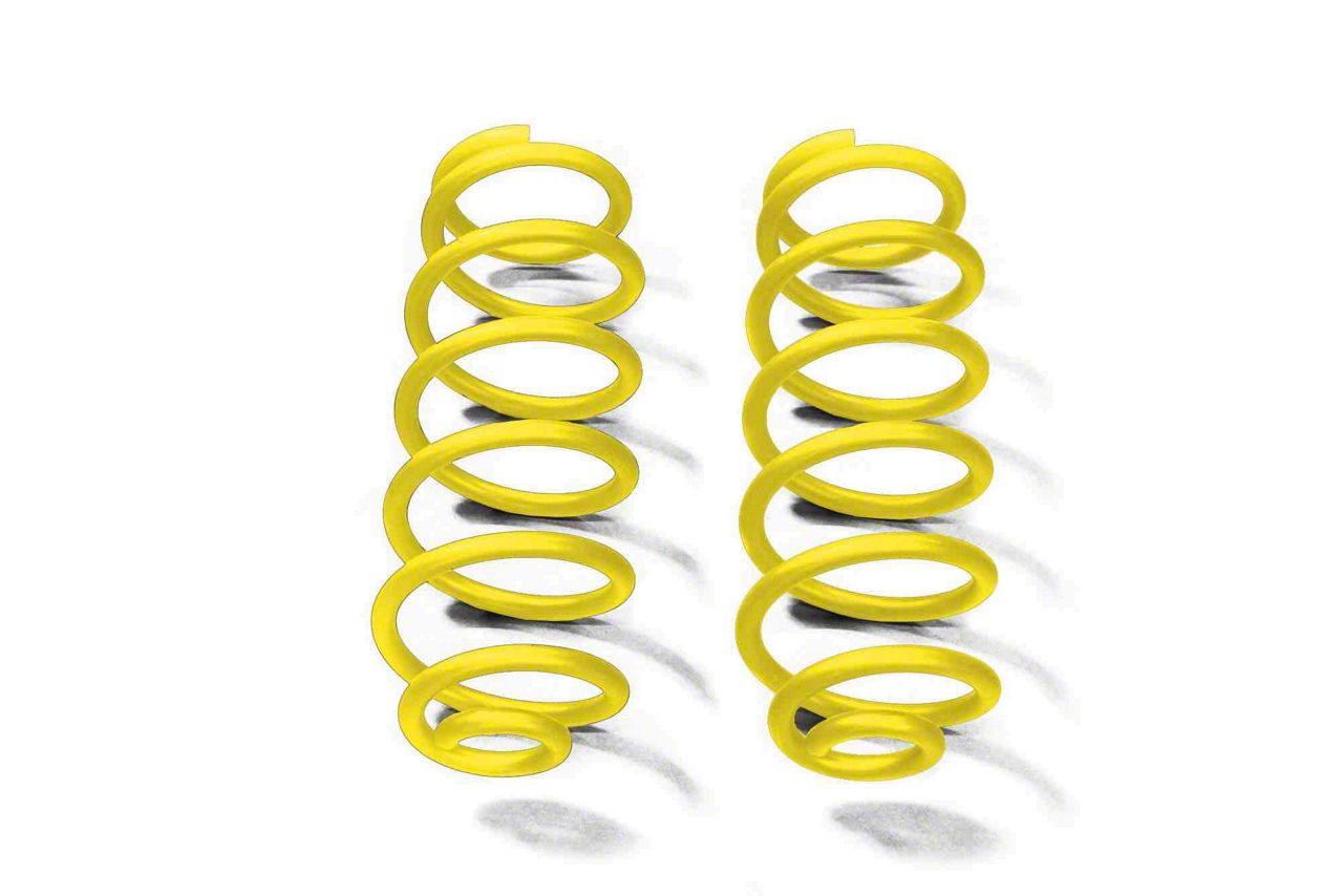 DISCLAIMER: Due to the nature of powder coat process, the springs will have a slight area that is bare metal (ie: without paint) due to how the parts are hung during the powder process. Once installed on your Jeep, you will not be able to see this 'paint hang spots'. If you are concerned about them rusting, you may apply touch up paint and/or other rust prohibitive coatings; doing so will not damage or harm the springs. Note: we will NOT accept returns over this unavoidable part of the powder coat process.