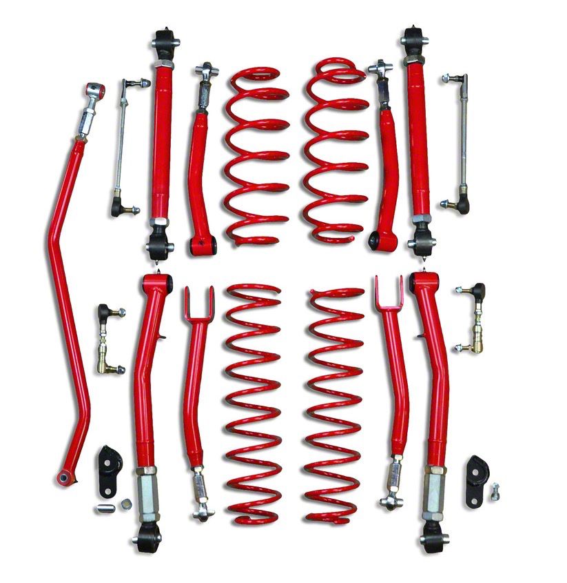 Superior Off-Road Performance. One of the best ways to better improve your Jeep's performance on the rugged trail is to equip it with a reliable suspension lift such as this Red Baron Steinjager 3.50-Inch Double Adjustable Suspension Lift Kit. With this installed, your vehicle will have an extra lift of 3.50 inches. The increased ground clearance lets you easily overcome difficult off-road paths while keeping your undercarriage damage-free. What's also great about this suspension lift is that its components are adjustable, allowing you to fine-tune them depending on your driving needs. Furthermore, each component comes in a nice red baron powder coat finish that helps increase its resistance against rust and corrosion.