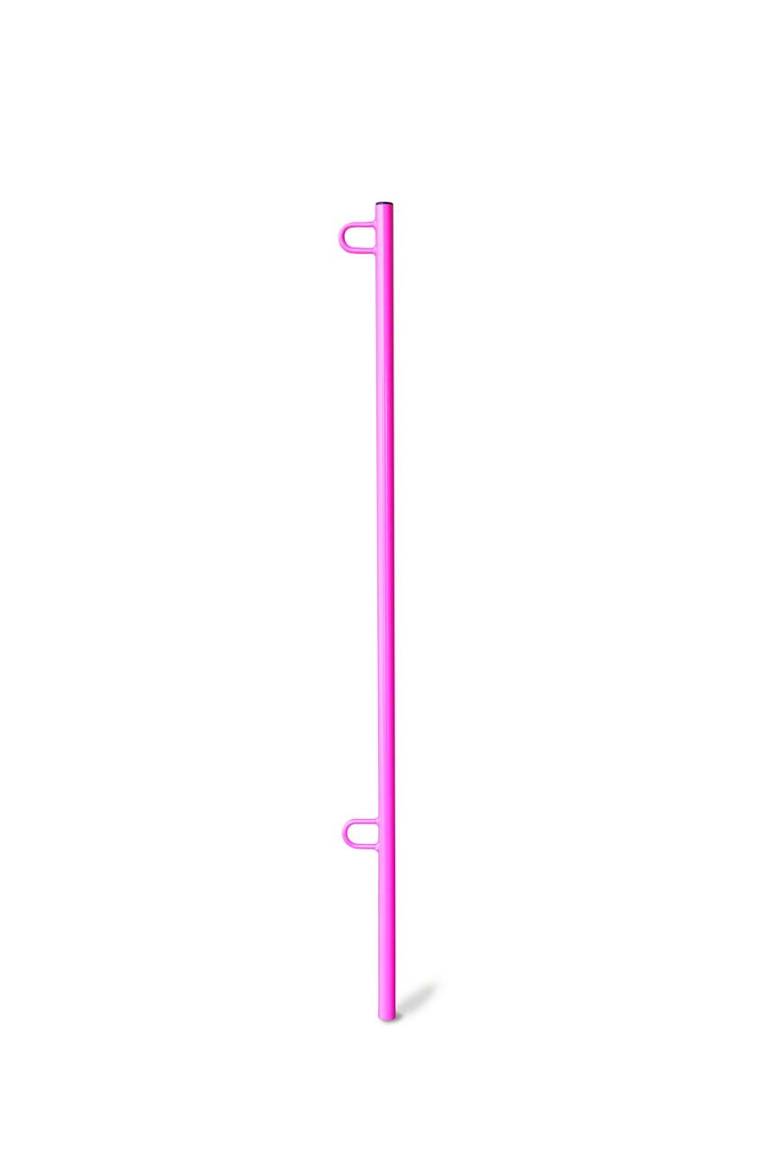 Construction and Design. This Flag Pole Kit is made from 1 inch OD x .120 inch wall tubing. Its hot pink finish blends and there's a plastic cap at the top of the pole to keep water and dirt out. The spacing between loops is 34 inches, which means you can hang a variety of flags.