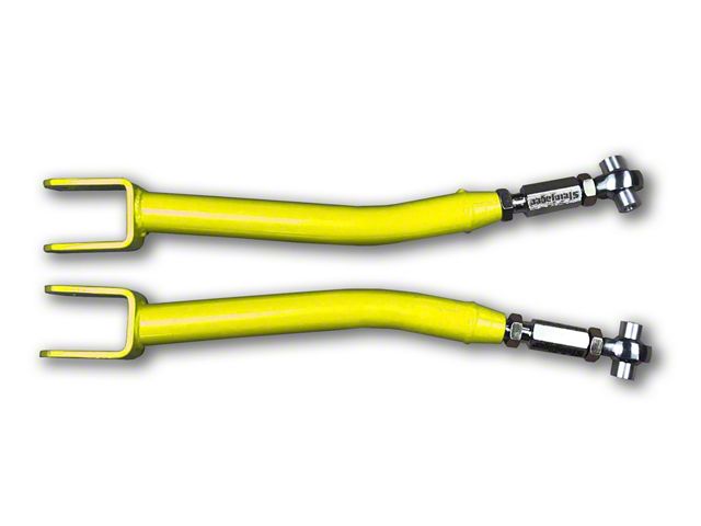 Description. Make: JeepModel: WranglerYears: 2018-PresentThese Front Upper Control Arms replace your worn out factory control arms. They are designed to fit Jeeps ranging from stock height to a 5" suspension lift. They are made in the USA utilizing Steinjager's Ladder Bar Adjuster and a Chrome Moly Rod End. DOM tubes are powder coated.Factory hardware will need to be reused.Tubing: 1.500" OD x 0.120" W DOM ASTM A513 Type 5