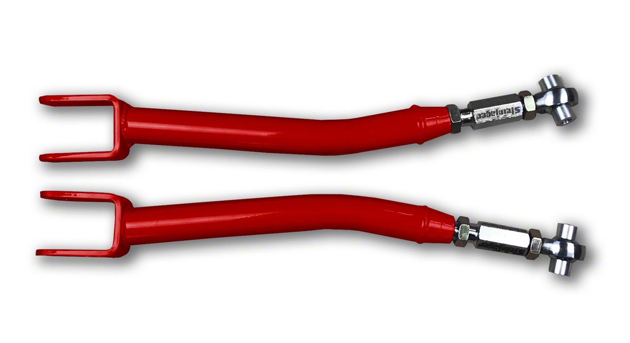 Comfortable Cruising. The Steinjager Double Adjustable Front Upper Control Arms for 0 to 5-Inch Lift; Red Baron is the ultimate solution for improving the suspension performance of your Jeep Wrangler. These front upper control arms are designed to provide additional adjustability, allowing you to fine-tune your suspension for optimal performance.