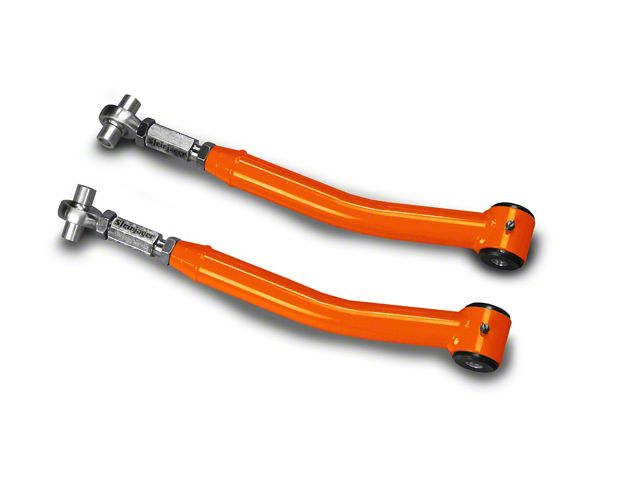 Description. Make: JeepModel: WranglerYears: 2018-PresentThese Rear Upper Control Arms replace your worn out factory control arms. They are designed to fit Jeeps ranging from stock height to a 5" suspension lift. They are made in the USA utilizing Steinjager's Ladder Bar Adjuster and a Chrome Moly Rod End. DOM tubes are powder coated.Factory hardware will need to be reused.Tubing: 1.500" OD x 0.120" W DOM ASTM A513 Type 5