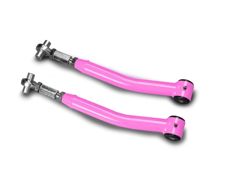 Better Driving Performance. Take on any rugged terrain with style and confidence with these Steinjager Double Adjustable Pinky Rear Upper Control Arms for 0 to 5-Inch Lift. This pair comes as a highly improved replacement for the old control arms of JKs with 0 to 5-inch suspension lift. They provide better precision control and steering stability while adding some lively spark of pink accents to your Wrangler’s powerful exterior.