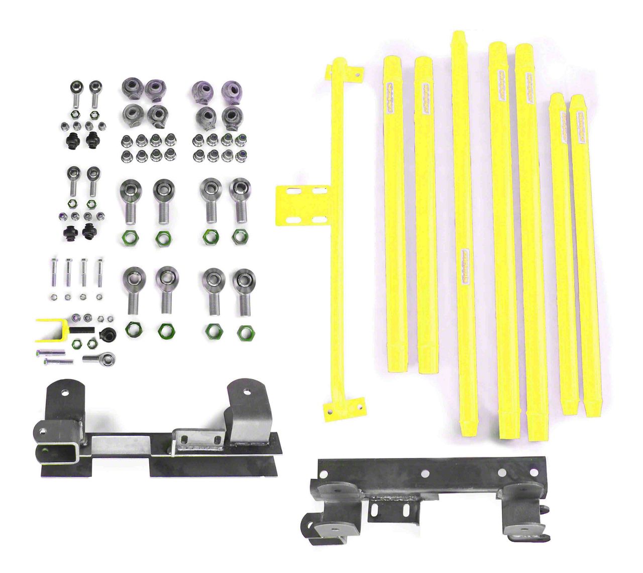 Superior Chrome Moly Construction. Chrome moly steel is used in the fabrication of the control arms and heim joints. This ensures superior strength, toughness, and durability under stress. Additionally, the kit comes with a durable Neon Yellow finish for good looks and protection from rust and corrosion.