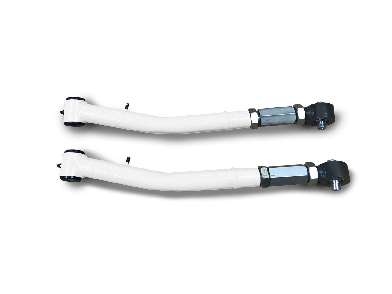 Reinforced Steering and Handling. Give your beat-up factory control arms an upgrade with this new pair of Steinjager Cloud White Double Adjustable Front Lower Control Arms for 0 to 5-Inch Lifts. These front control arms are designed to improve the overall handling of Wrangler with 0 to 5-inch suspension lifts. These components are double adjustable, allowing you to dial in your control arm length to suit your application.