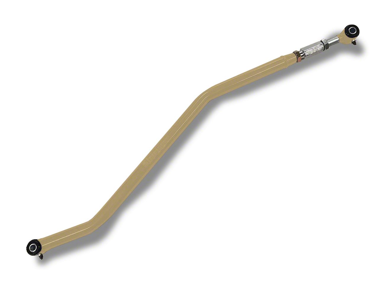 Rugged Construction. All Steinjager products are made for top performance, and the Double Adjustable Premium Rear Track Bar is 1 good example. Crafted from 1.25 inch. OD x 0.120 inch chrome moly tubing, the Steinjager Track Bar is bent and welded in the USA for superior quality and precision fitting. The frame mounted end features a fixed poly mount, while the axle mounted end uses .75-inch poly housing. It comes in a durable, military beige, powder-coated finish to stand out.