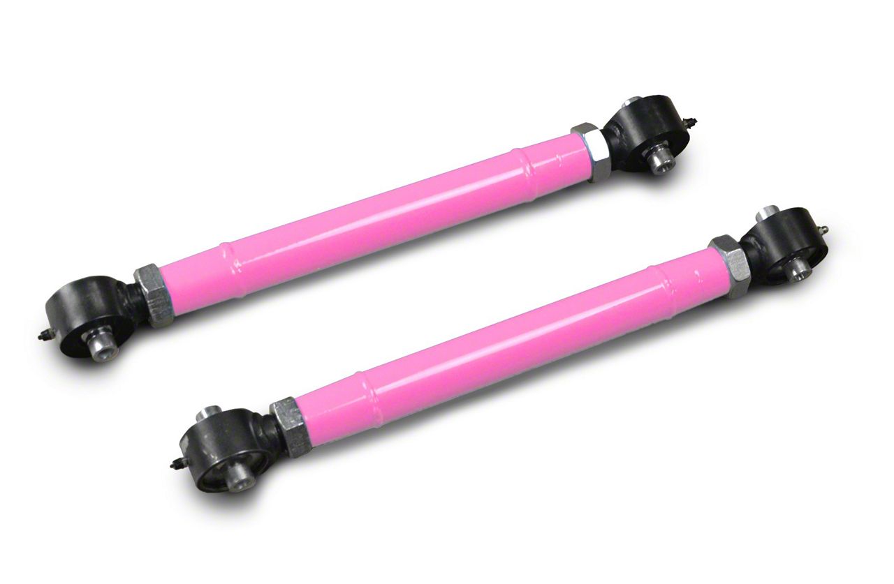 Rigid Build Quality. These rear lower control arms get their exceptional durability from their high quality 1.750-inch outer diameter DOM tubular steel construction which provides superior rigidity and an accurate fit. Meanwhile, their rod ends are manufactured from ultra-tough chromoly steel for consistent performance. Lastly, these arms feature a Pinky powder coat finish giving your Jeeps underchassis area a radical style.