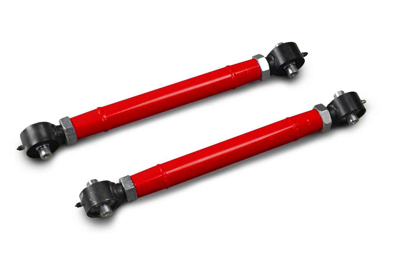 Dual Adjustability. These rear lower control arms are double adjustable enabling you to fine-tune your suspension geometry to your driving needs for better control. These lower control arms also feature fully rebuildable rod ends with poly races providing smoother and quieter operation.