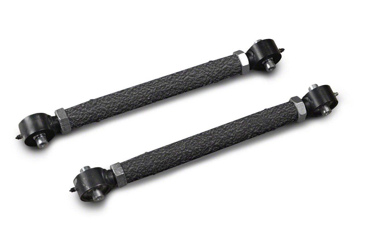Dual Adjustability. While a lot of aftermarket lower control arms feature single adjustability, these rear lower control arms are dual adjustable. This design enables you to fine-tune your Jeep’s suspension geometry to best suit your driving needs. Additionally, these arms’ rod ends are completely rebuildable and include poly races that provide smooth joint articulation.
