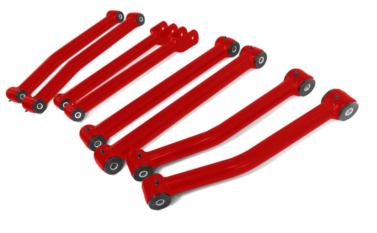 Application. These Steinjager Fixed Length Front and Rear Control Arms for 2.50 to 4-Inch Lift; Red Baron were designed to fit all 2007-2018 Jeep Wrangler JK models.