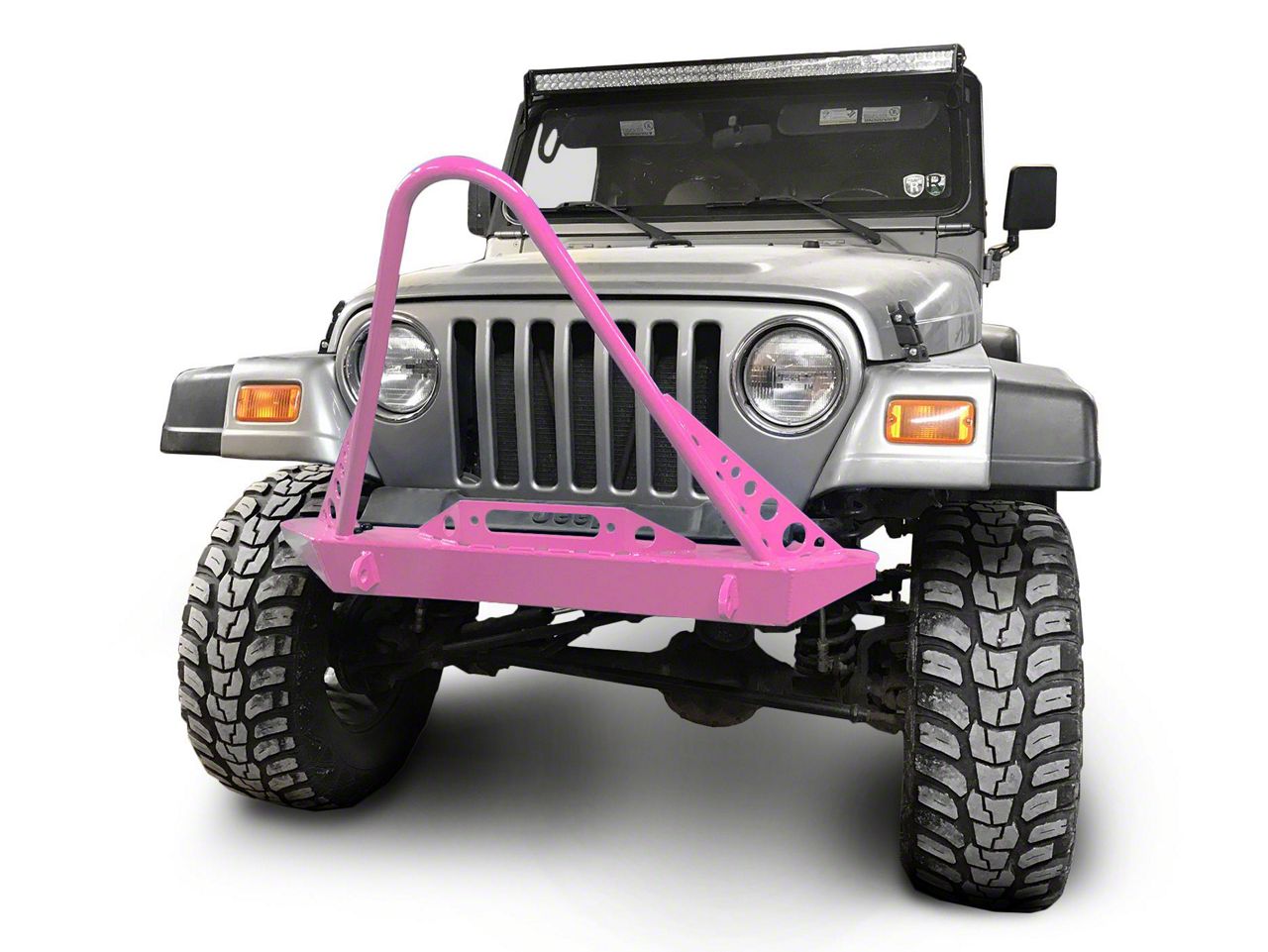 Description. Make: JeepModel: WranglerYears: 1997-2006The Steinjager front bumper will give your Jeep a fresh new look and allow you to retain your factory sway bar. It is constructed of 3/16" steel with 1/2" D-ring mounts welded to the bumper. The stinger is constructed out of 1.25" x 0.120 wall tubing with 3/16" gussets. Our Front Bumper is manufactured completely in house so it is Made in America. Install requires the use of the factory hardware.
