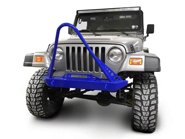 Description. Make: JeepModel: WranglerYears: 1997-2006The Steinjager front bumper will give your Jeep a fresh new look and allow you to retain your factory sway bar. It is constructed of 3/16" steel with 1/2" D-ring mounts welded to the bumper. The stinger is constructed out of 1.25" x 0.120 wall tubing with 3/16" gussets. Our Front Bumper is manufactured completely in house so it is Made in America. Install requires the use of the factory hardware.