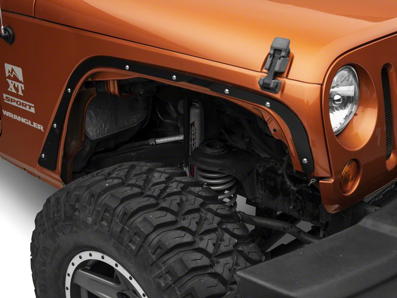Extra Tire Clearance. The Steinjager Front Fender Deletes in black feature strategic engineering that allow extra room for tire clearance. Manufactured with excellence, this high impact product eliminates the ugly factory inset, giving your Jeep a true, custom look.