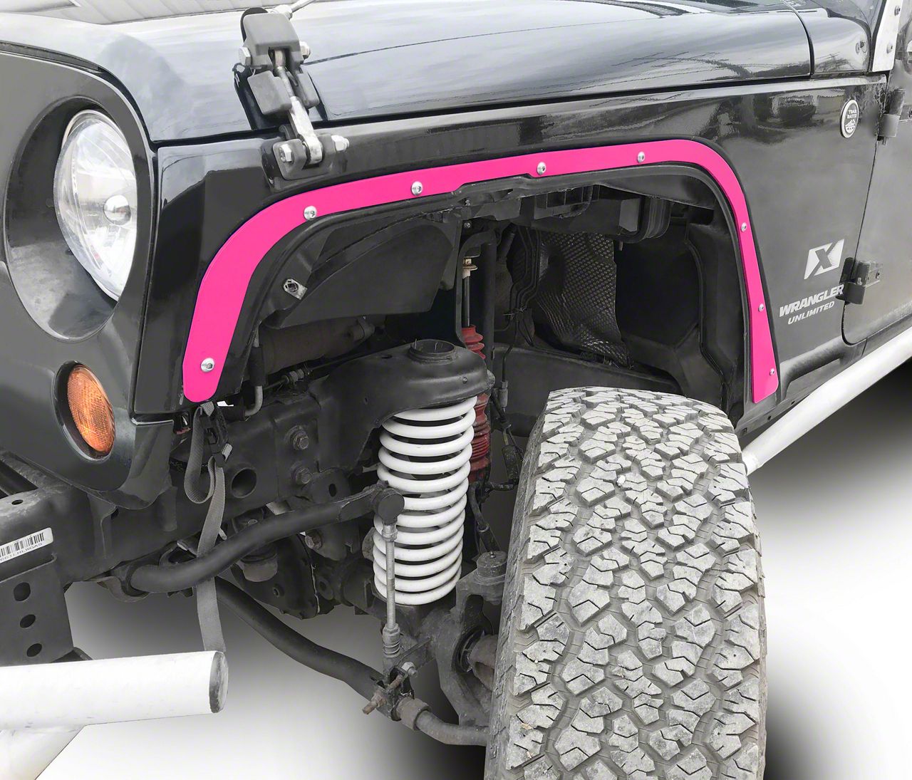 Application. The Steinjager Front Fender Deletes - Hot Pink are built to be a perfect fit for all 2007-2018 Jeep Wrangler JK models.