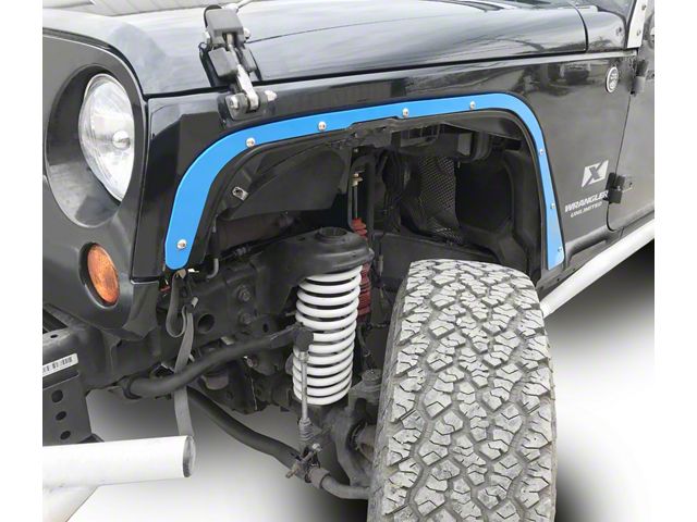 Application. The Steinjager Front Fender Deletes - Playboy Blue are designed to be a perfect fit for all 2007-2018 Jeep Wrangler JK models.