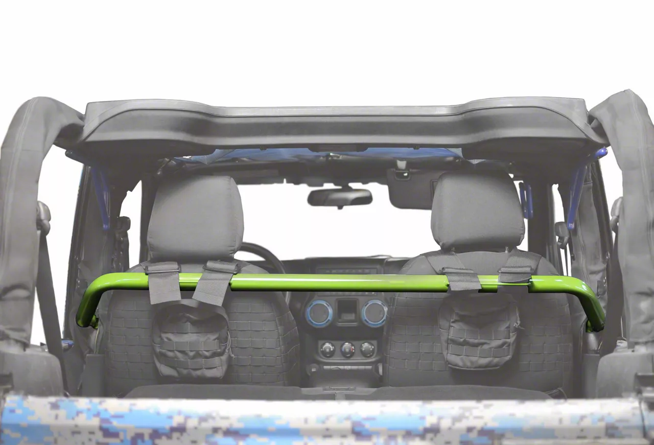 Application. The Steinjager Front Seat Harness Bar - Gecko Green is manufactured to be a direct fit for all 2007-2018 Jeep Wrangler JK 2 Door models.