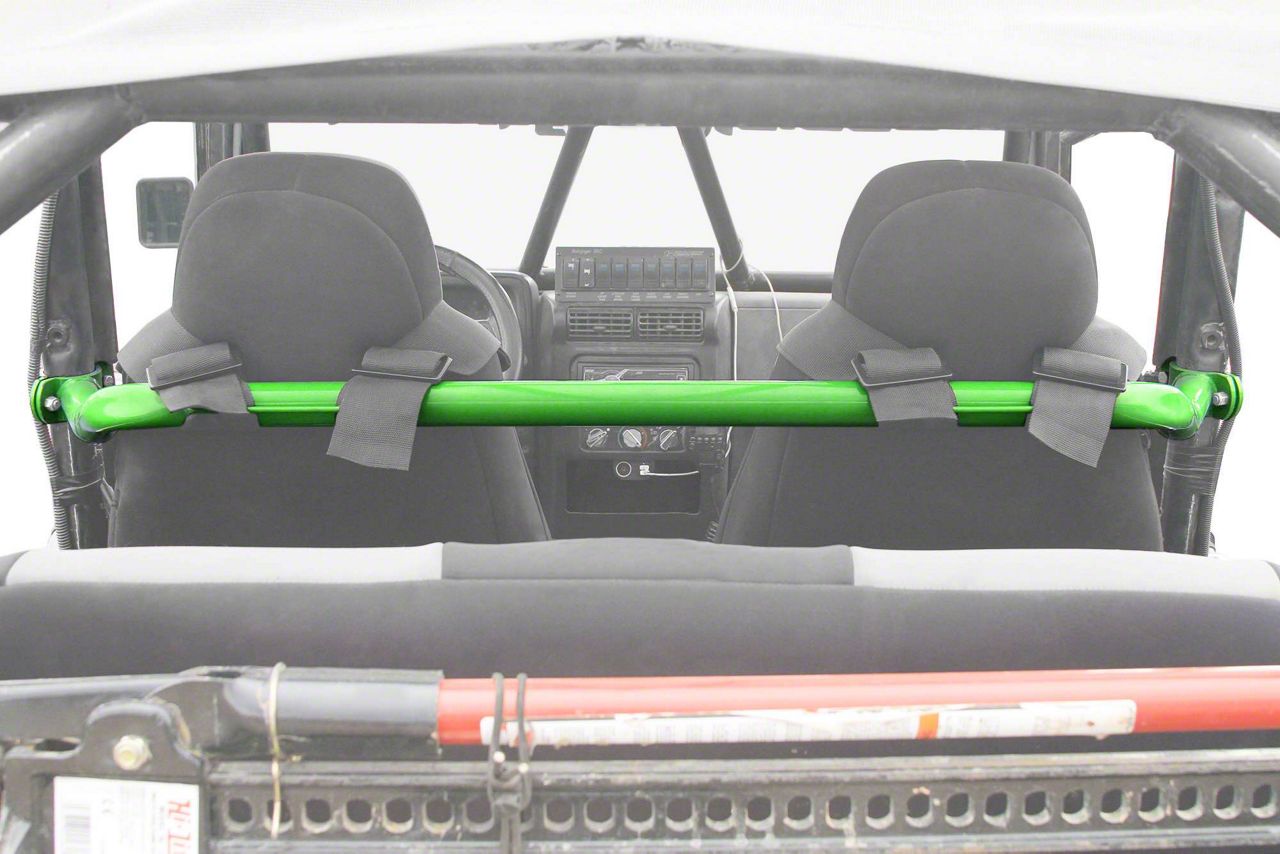 Description. Make: JeepModel: WranglerYears: 1997-2006The Steinjäger Harness bar is designed to not only stiffen up the B-Pillars but gives you a solid place to attach your shoulder harness straps. The install is simple, only requires a few hand tools to complete the job. All of the necessary hardware is provided.