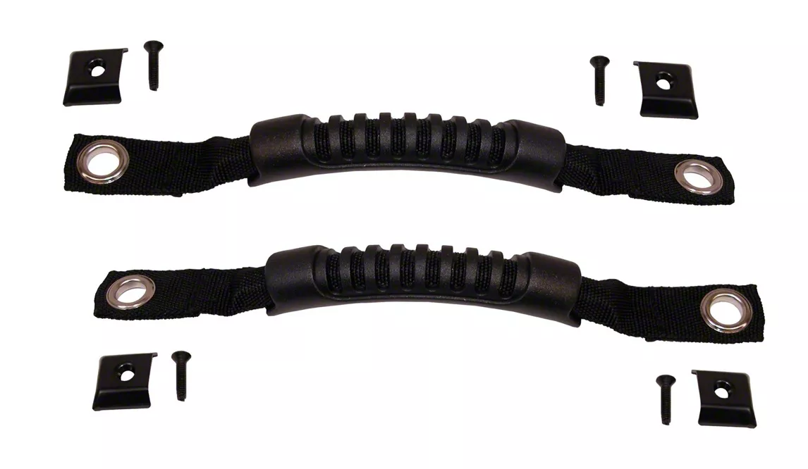 Composed of Durable Materials. Each grab handle is made with durable nylon and comes with a molded handle. These features make the grab handles remarkably tough, so they’ll remain in good shape even when they’re constantly being tugged. Plus, they come in black to complement your Jeep’s rugged interior.
