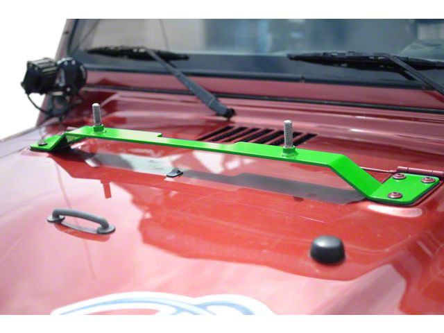 Application. The Neon Green Steinjager High Lift Jack Hood Mount is designed to fit 1997-2006 Jeep Wrangler TJ models.
