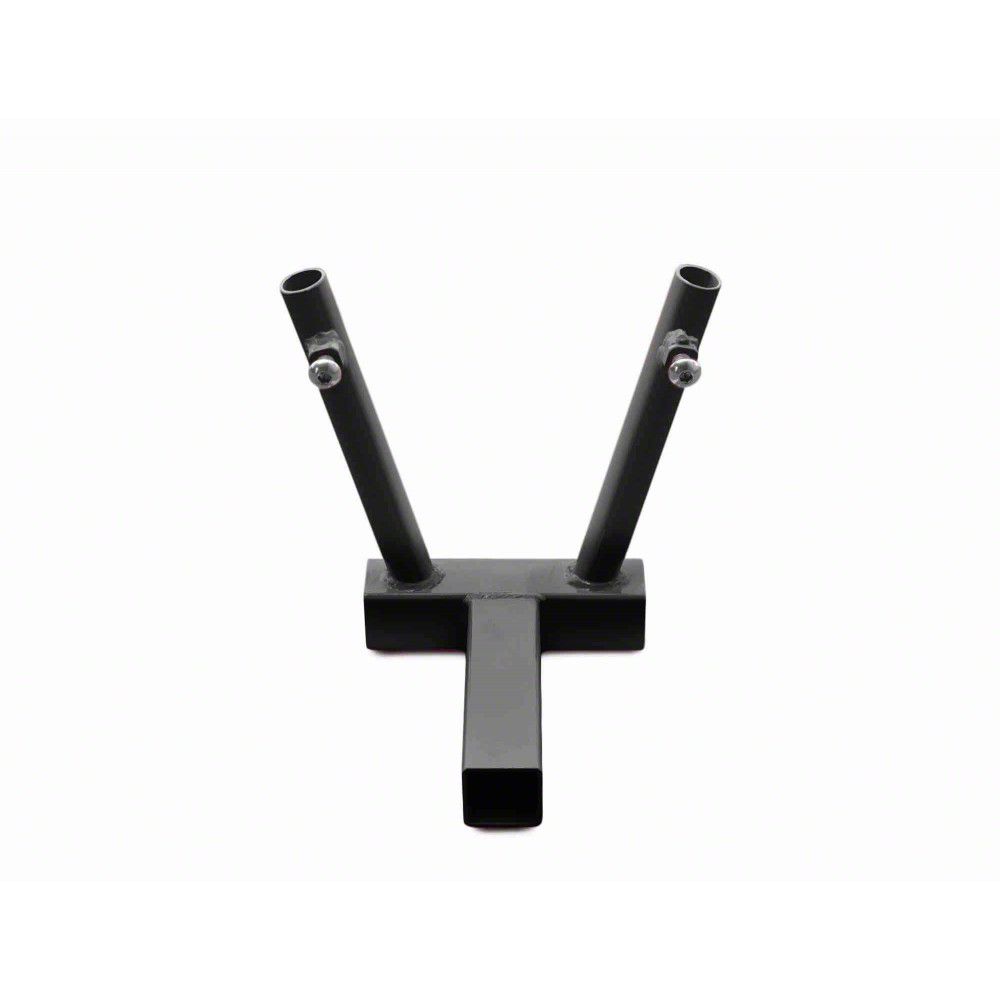 Easy to Use Design. The Steinjager Hitch Mounted Dual Flag Holder is a convenient and durable accessory for your Jeep Wrangler JL. It comes in a sleek black finish and is designed with three offset holes that can accept round flag poles with 1 inch or less outer diameter. The easy-to-use design includes two Allen head bolts for secure mounting onto your Jeep's hitch receiver.