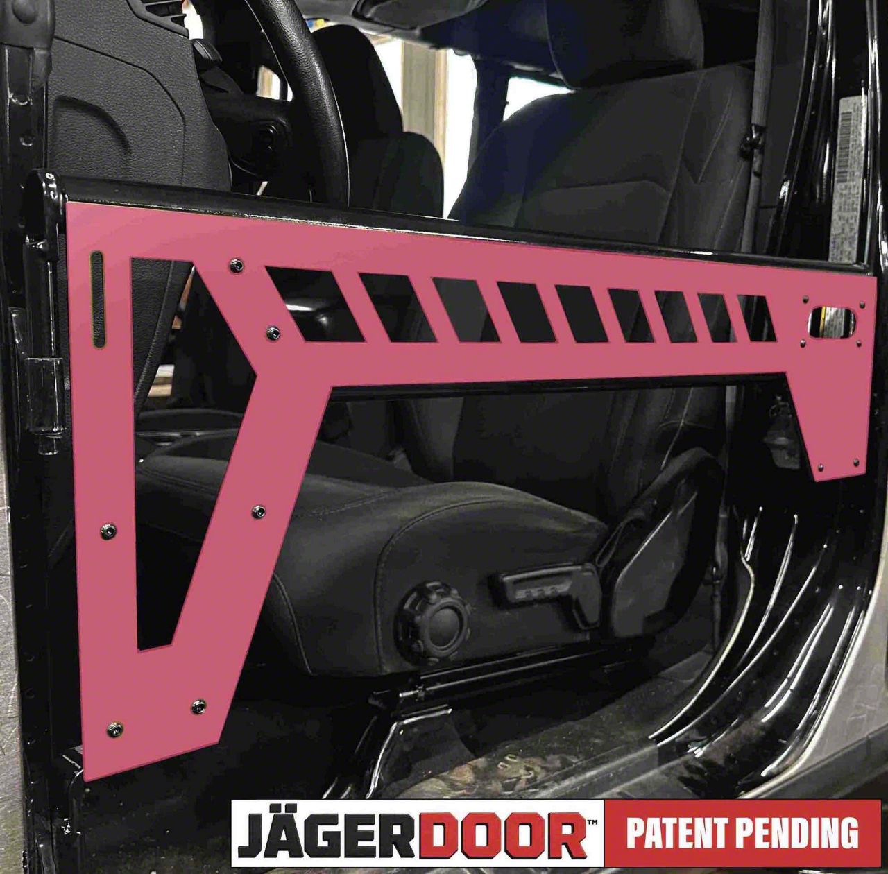 Application. This Steinjager JagerDoor Front Trail Doors (Hot Pink) fits 2007-2018 Jeep Wrangler JK models.
