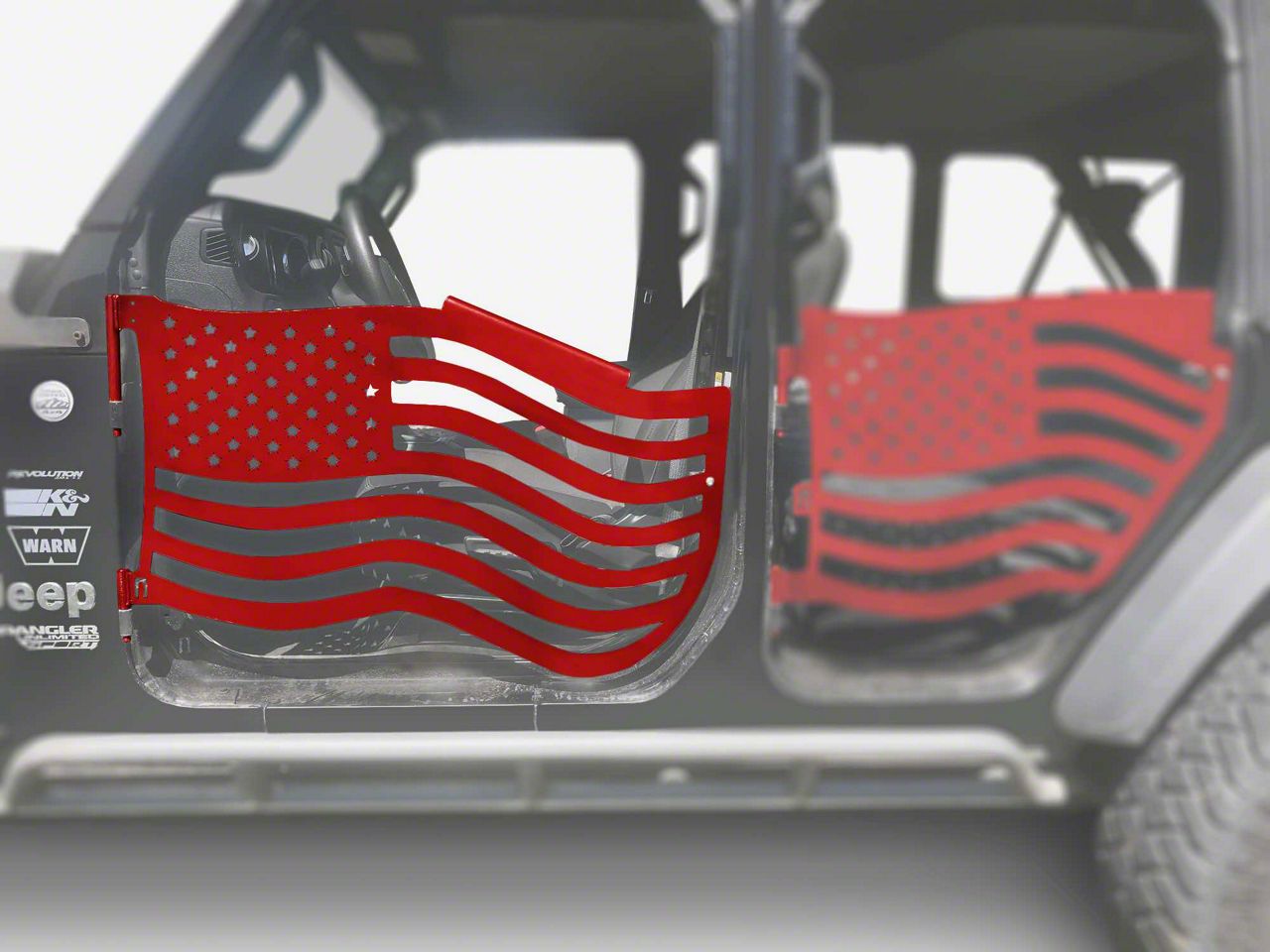 Application. These Steinjager Premium American Flag Front Trail Doors; Red Baron are designed to fit 2018-2026 Jeep Wrangler JL models. Driver and passenger side included.