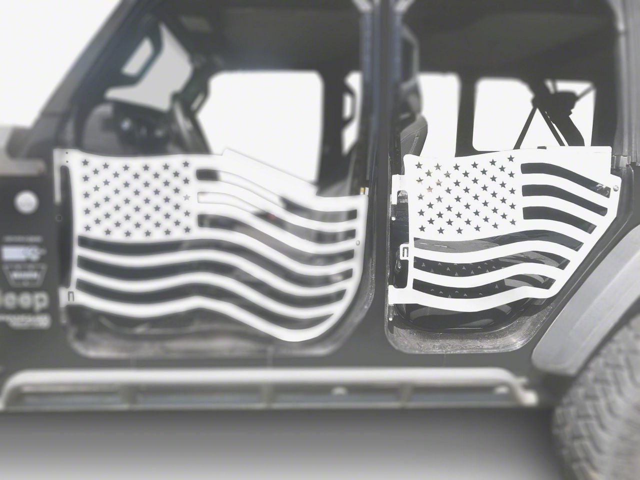 Application. The Steinjager Premium American Flag Rear Trail Doors in Cloud White are designed to suit 2018 to 2026 Jeep Wrangler JL Models With 4-Door.