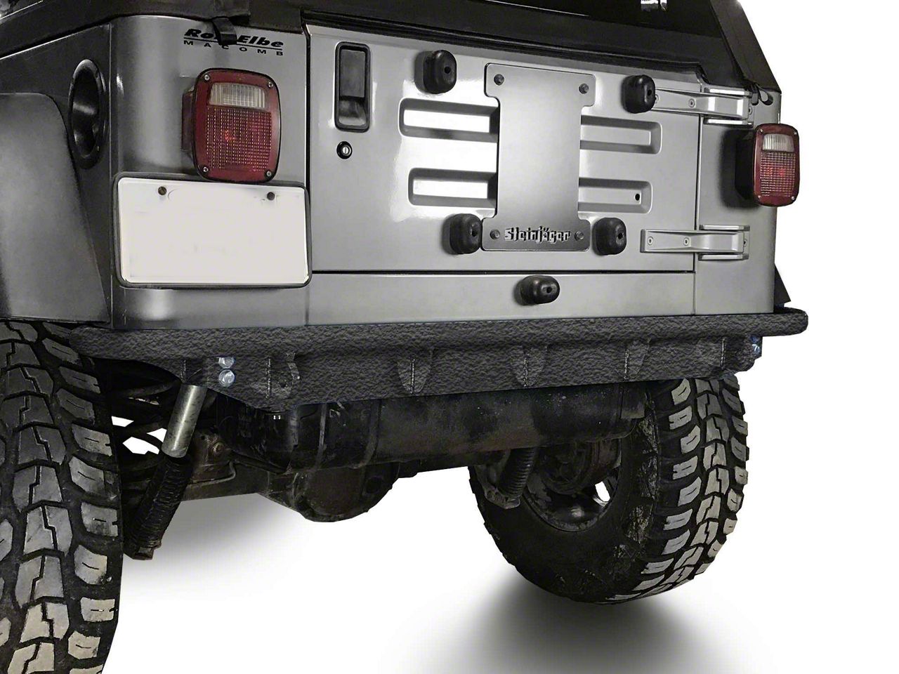 Description. Make: JeepModel: WranglerYears: 1997-2006The Steinjager rear bumper offers additional corner protection while tucking close to the body. Two standard 7/8" D-ring mounts are fully welded to the bumper. Mounting hardware is included but you will need to reuse the two lower bolts.