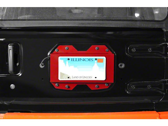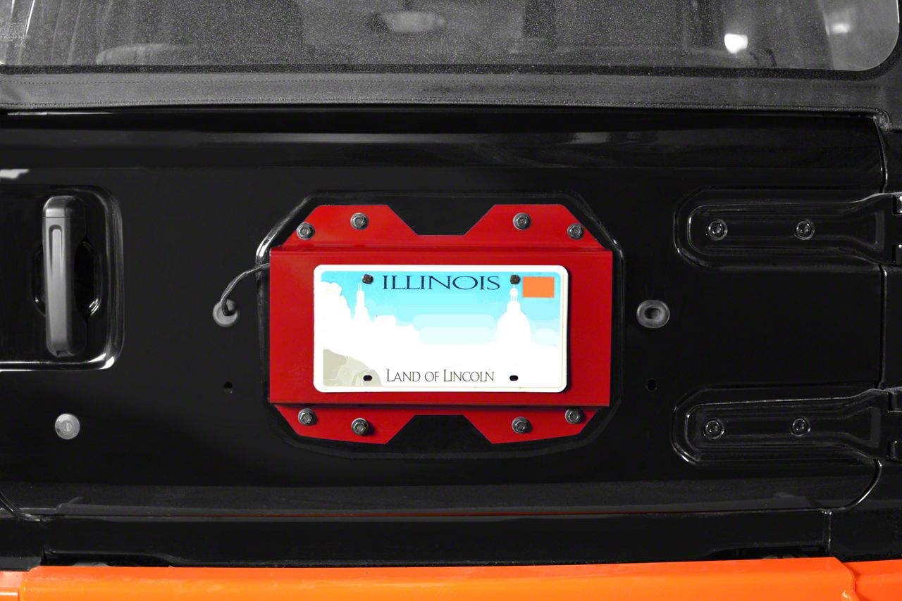 Keep Tailgate Holes Covered. Getting your Jeep ready for off-roading requires removing some factory parts like the backup camera and spare tire carrier. This exposes a lot of holes on the tailgate. Good thing there’s this Steinjager Rear License Plate Relocator in Red Baron. It’s simple yet very stylish, perfectly sized to hold your Jeep’s license plate and cover up unsightly holes. It also won’t block the tailgate vents for unrestricted ventilation.