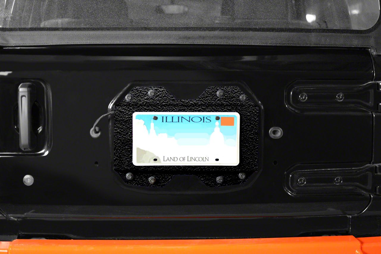 Cover-Up for Tailgate Gaps. Removing some of your Jeep’s tailgate components to make room for off-road accessories often results in unsightly holes and gaps. With this Steinjager Rear License Plate Relocator in Textured Black, however, you can keep everything looking sleek and clean. What’s more, you’ll also be able to retain the factory tailgate vents. This license plate relocator is also sized perfectly for a uniform and pleasing look.