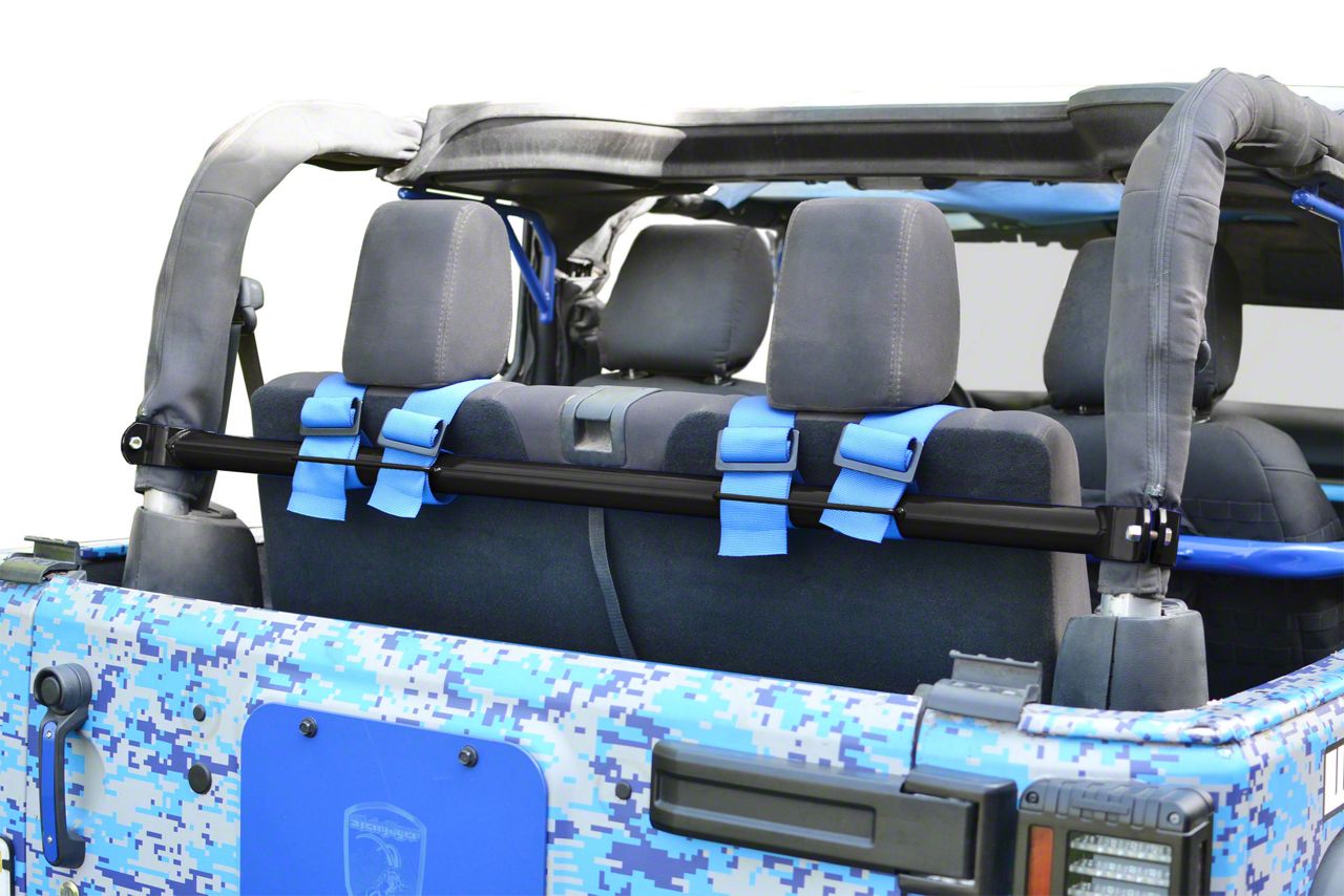 Application. The Steinjager Rear Seat Harness Bar – Black is designed to fit all 2007–2018 2-Door Jeep Wrangler JK models. It is sold as a kit.