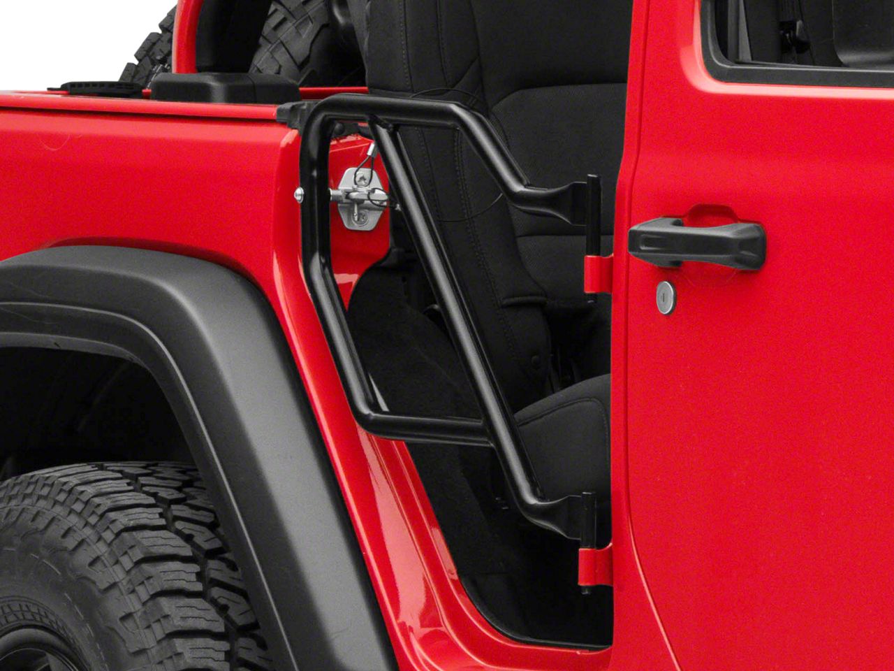 Must-Have Off-Road Accessory. Riding open-air in your Jeep is one of the best things about off-roading. That said, you don’t have to sacrifice safety by going completely doorless. These Steinjager Rear Trail Tube Doors in Black will ensure that your rear passengers are safely inside your Jeep without ruining the trail view.